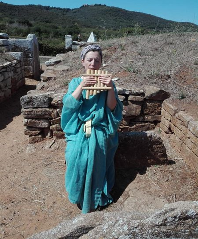 Lola Teale lives in Tuscany, Italy, the cradle of the Etruscan civilization. She has always had a passion for history and took a university degree in that subject. Reenactment has allowed her to spread her historical knowledge. Her main sectors of interest are music, calligraphy, and the history of the pan-flute, which she constructs according to ancient descriptions and regularly plays.