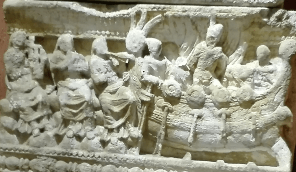 The Guarnacci Etruscan Museum in Volterra, Italy, provides an opportunity to study a number of these urns in varying states of conservation. All share the same general characteristics, and depict this scene using the same composition: on the viewerโs right stands Odysseusโ boat, while the sirens to the viewerโs left seem to elaborate considerably on the scene as described by Homer.