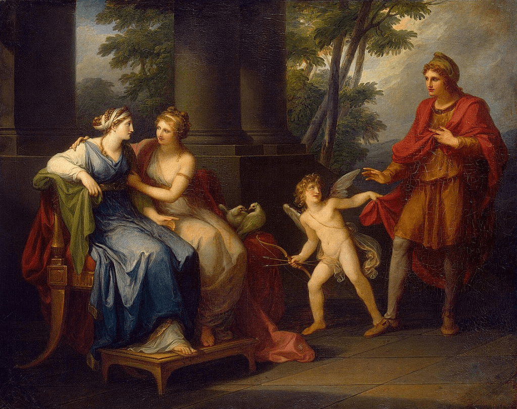 Menelaus has left for Crete under the influence, according to Demetriosโ poem, of โunavoidable fateโ. Paris is alone with Helen (except for the obligatory maidservant and famous Spartan Hunting dog):