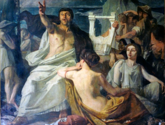 A second example entails alliteration with purposefully archaizing intent. It is nothing less than the opening of the Odyssey itself. In fact, it entails the last line alone of the poemโs opening, which sends an alliteratively unequivocal message โ as if to say, this is, and will be treated as, an antique poem, even in what Homeric audiences considered their โmodernโ times. The poet begins by invoking the Muse to tell of Odysseus, the โman of many turnsโ, who suffered much on both land and sea upon his return from Troy. The adventures are many, so the poet ends the invocation as follows: