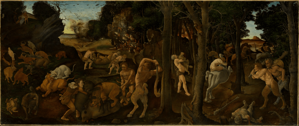 In Book 5, when describing how humans first discovered fire, Lucretius captures not only the physical process through which humanity harnessed fire but also the philosophical associations between natural phenomena and human progress and knowledge. The lines fulmen detulit in terram mortalibus ignem / primitus (โโLightning was first to send down fire to menโ,โ 5.1092โ3)[5] depict a transformative event where lightning, a force of nature, becomes the conduit for the gift of fire to humanity. This moment of transmission, detulit (โโbrought downโโ), echoes the myth of Prometheus who, defying the gods, brought fire to mankind.