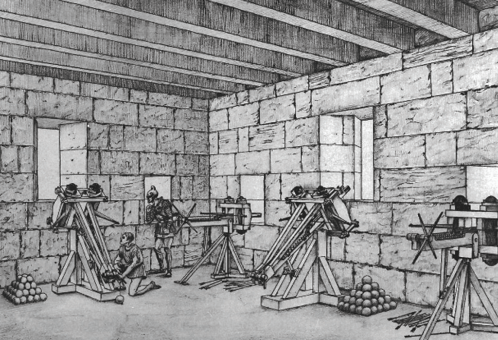 It is less often appreciated that throughout the centuries of Roman might, the standard equipment of every legion also included over fifty powerful catapult artillery pieces.