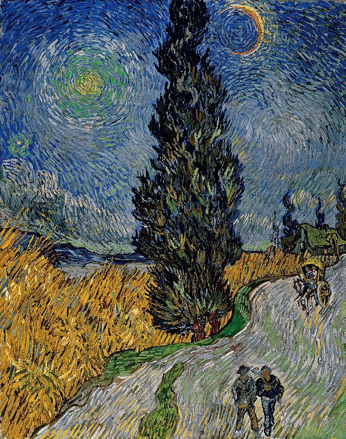 It is worth noting that the motif of a fork in the road (or a crossroads) and the associated pair (or range) of choices it implies (when considered from different perspectives) has been exploited quite widely in poetry. Of the poems from the last century and a half, a number of important ones along these lines have caught my attention. Before Frost, the topos was taken up by Richard Hovey (1864–1900), “At the Crossroads” (published in 1898) and Guido Gozzano (1883–1916), “Le due strade” (published in 1911). As for Frost himself: a fascinating antecedent is pointed out by Faggen, namely “Our journey has moved forward” by Emily Dickinson (written c.1862, but first published in Poems, 1891):[4]