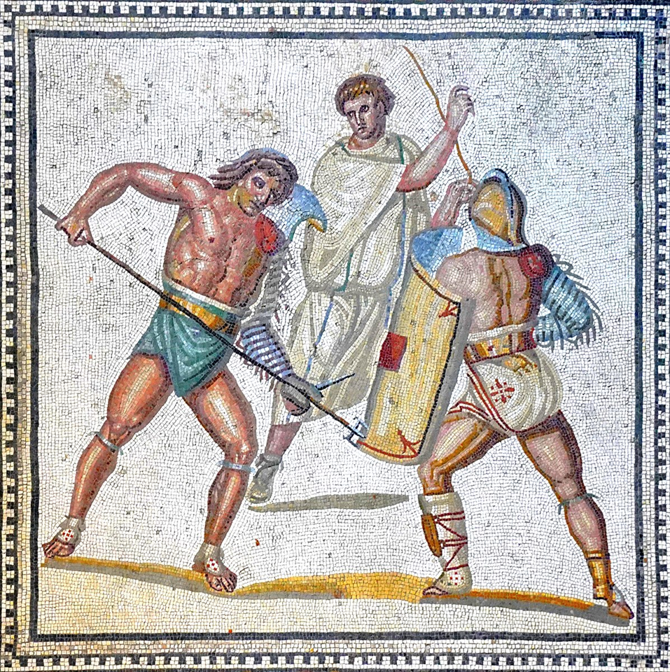 Polybius wrote that funerals were a spectacle that inspired young men to risk everything for the res publica in order to demonstrate their courage and win glory (6.54.1-5). Perhaps gladiatorial combats were ultimately one means of elucidating this goal: seeing these single combats between Rome’s enemies, as well as the inevitable wounds and deaths, would have desensitised the Roman youth to acts of violence and, more specifically, to the killing of traditional groups considered Roman enemies. It might also inspire in them a desire to defeat such enemies in single-combat.
