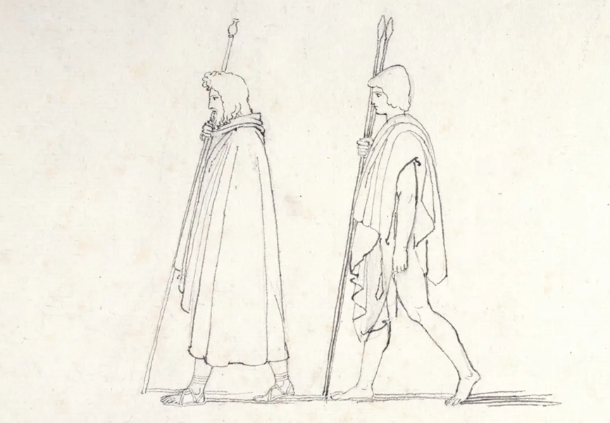 And Menelaos Atreïdes, with his auburn hair, went with them, holding a golden cup full of wine with a hint of honey in his right hand, so that they could pour libations before setting out.