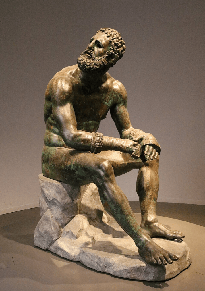 The Portonaccio Sarcophagus captures a final moment of triumph before Rome began her long decline into chaos and decay. This gives it a certain poignancy that we do not find even in the most moving of the other ancient masterpieces in the Palazzo Massimo alle Terme – Livia’s Garden Room, the Boxer, and the beautiful marble statue from Tivoli of the crouching Venus (originally by the otherwise-unknown Hellenistic sculptor Doidalses).