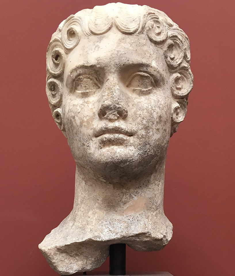 The head of Agrippina on display at the Getty Roman Villa in Los Angeles perhaps demonstrates how artists were growing tired of decorum, restraint and Augustan convention. The sculptor seems more interested in Agrippinaโs hair than her face, for whatever reason. He has also tried to find a middle way between idealism and naturalism, and although the final compromise is not necessarily a happy one, the result is interesting โ exciting, even (if only to historians of art).