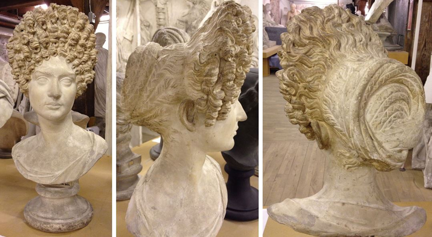 To get some idea of how unusual this sort of hairstyle was even among women of the imperial family, it might be worthwhile to look at the relative plainness of earlier portrait busts, where hairdressing was concerned.