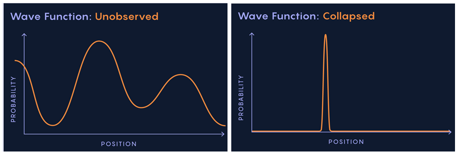 Modern quantum theory currently grapples with some of the issues that Lucretius attempted to address over 2,000 years ago. In the Copenhagen Interpretation of quantum mechanics, quantum particles do not have a definite position until they are observed. These particles exist in a probabilistic potential function described as a โwavefunctionโ. The wavefunction of a given particle can be evolved deterministically and the particle exists in a โsuperpositionโ (whereby it can exist in multiple states simultaneously) of locations governed by the wavefunction. Lucretiusโ atoms, like quantum particles, are random and flowing, but there is some order to their disorder. When measurement is made and the wavefunction collapses, what is observed is a tangible โchoiceโ of the particle with respect to its position.[2] This mirrors Lucretiusโ idea that the swerve gives atoms freedom which leads to creation and novelty.