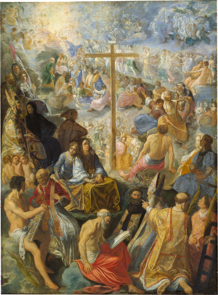 Emperor Justin II and his wife Sophia responded to Radegunde’s request by sending her a piece of the relic in 569. It seems that three of Venantius’ Fortunatus’ hymns were sung during a procession in which the relic was greeted in the monastery in Poitiers. Venantius wrote a total of six poems to celebrate the reception of the true Cross, all included in the second volume of his carmina: (1) Crux benedicta nitet (The blessed cross shines); (2) Pange, lingua, gloriosi (Sing, tongue, [the mystery] of the glorious [body]); (3) Virtus celsa crucis (The lofty virtue of the cross); (4) Dius apex carne (The divine height in flesh); (5) Extorquet hoc sorte (This demands by destiny); (6) Vexilla regis prodeunt (The king’s standards march forth).